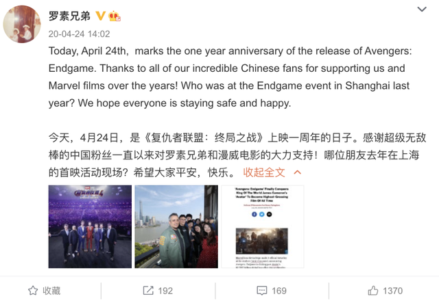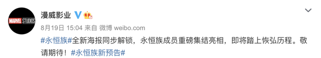 漫威影业官方微博迄今最新一条微博是三个多月前,8月19日,发布的《永恒族》新款海报。