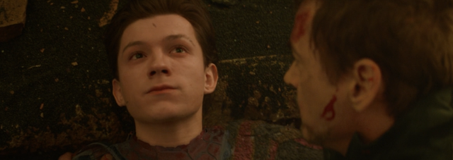 《复联3》,灭霸成功打完响指,小蜘蛛即将死去,死前的他第一次意识到死亡离自己如此接近,他不停地跟亦友亦父的钢铁侠说:我不想死,我不想死……