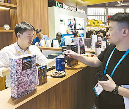 参观者品尝牙买加的蓝山咖啡。 经济日报-中国经济网记者 周明阳摄