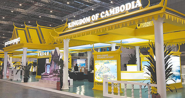 柬埔寨国家馆外形设计源自柬埔寨皇宫,重点展示高棉民族传统文化和特色商品。 经济日报-中国经济网记者 张保供图