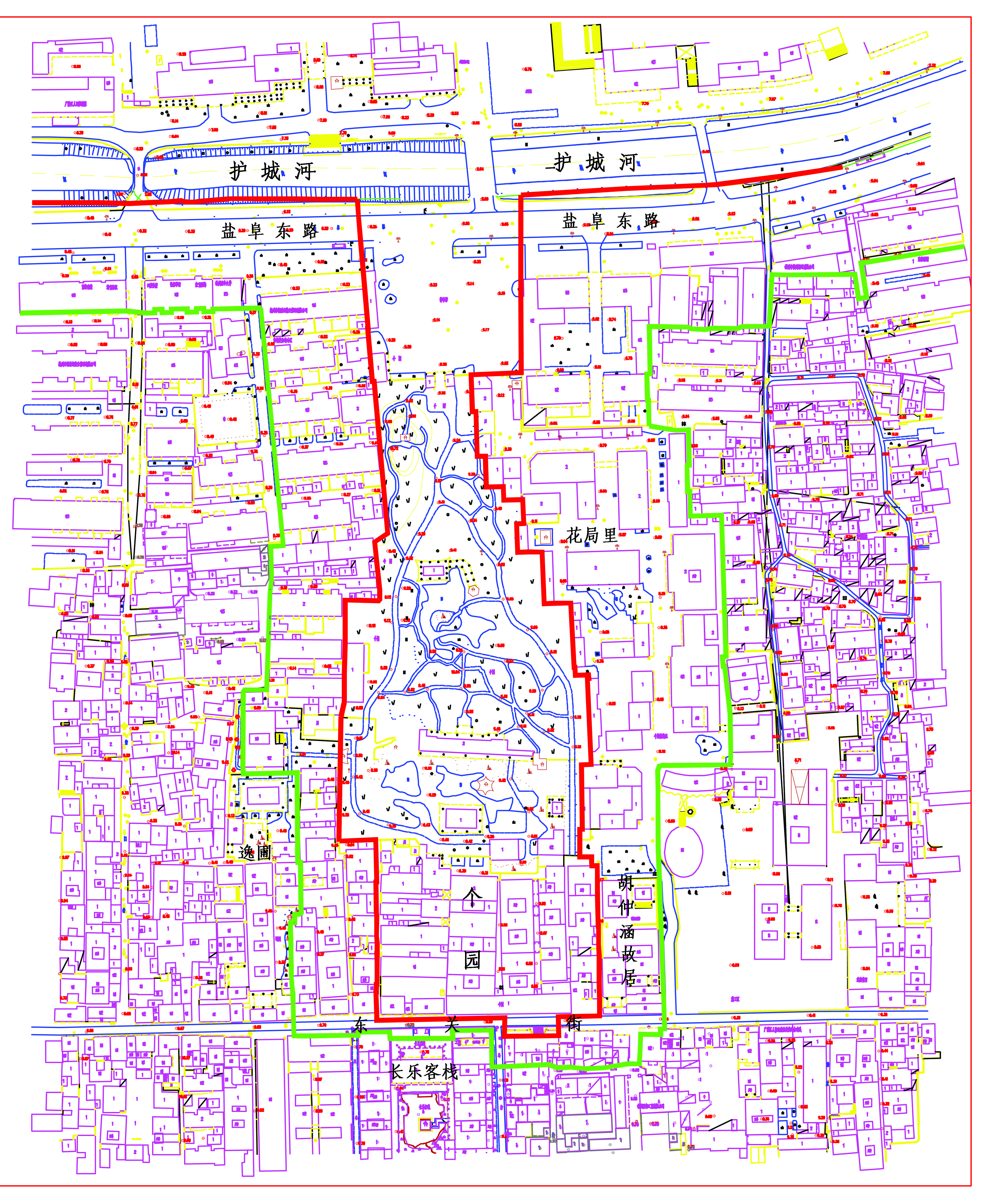 (4)相关古建筑群:按照建筑群的外部边界(如院墙、街道)界划。