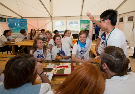 2014年6月,俄中青年论坛在俄萨马拉州举行。图为两国青年在论坛小组讨论中愉快交流。 林雪丹 摄
