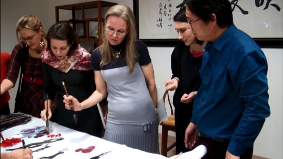 文化中心举办的国画讲座上,俄罗斯学员临摹画作感受中国画魅力。 林雪丹 摄