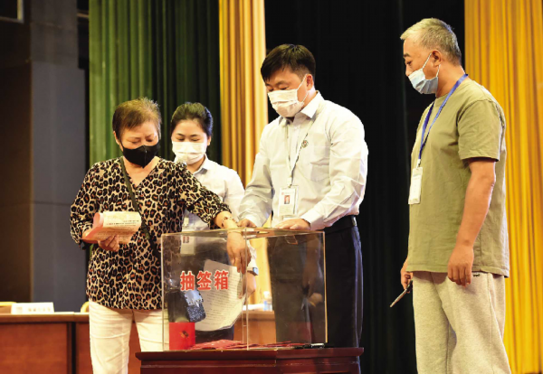 昨天午后,记者提前半小时到达现场,已有不少家庭代表持《摇号通知书》、48小时核酸阴性证明在等候。为了给选房居民做好服务保障工作,现场还设置了政策宣传区、签到区、等待区,每个区域均有专人负责引导、讲解。