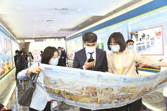 与会嘉宾认真观展,一件件实物、一幅幅图片、一组组数据,引得许多人纷纷竖起大拇指点赞。