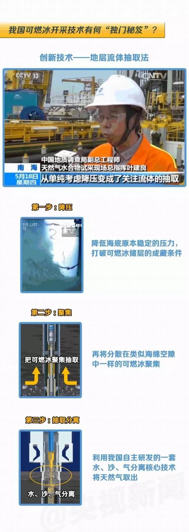 之前,国土资源部中国地质调查局曾宣布,我国可燃冰试采获得成功标志着我国成为全球第一个实现了在海域可燃冰试开采中获得连续稳定产气的国家。