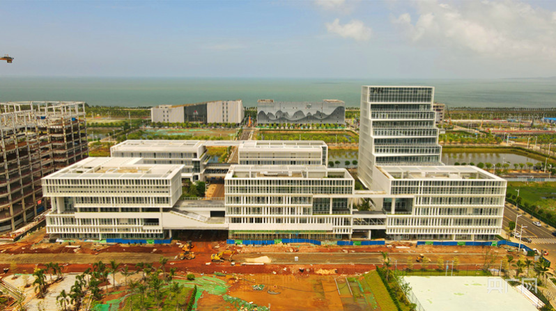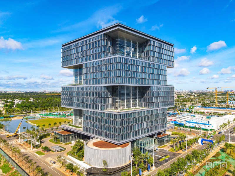 “秒批”完成建设施工许可的海南能源交易大厦如今已封顶办公(央广网发 上图为江东新区供图,下图为晁聪摄)