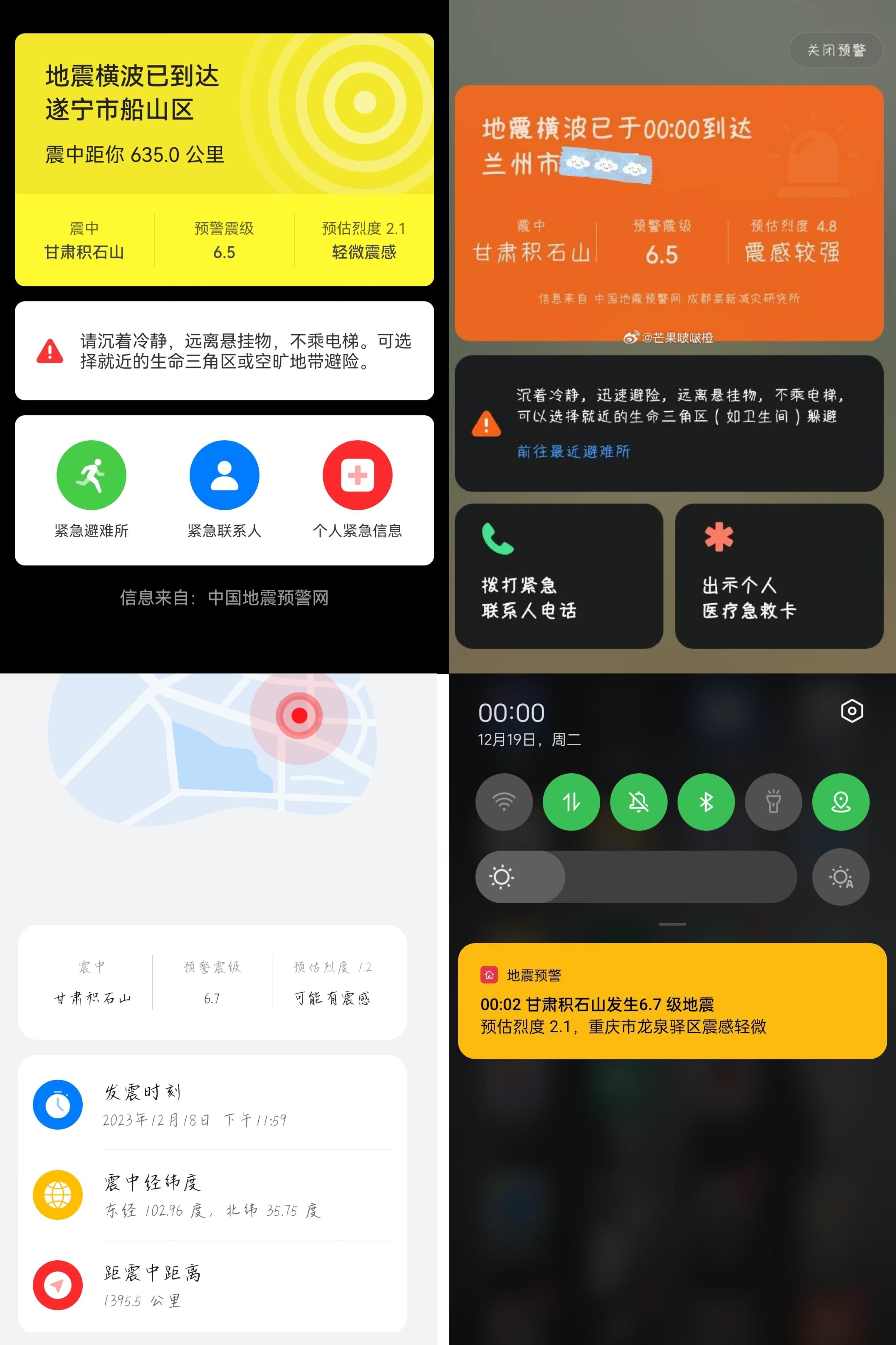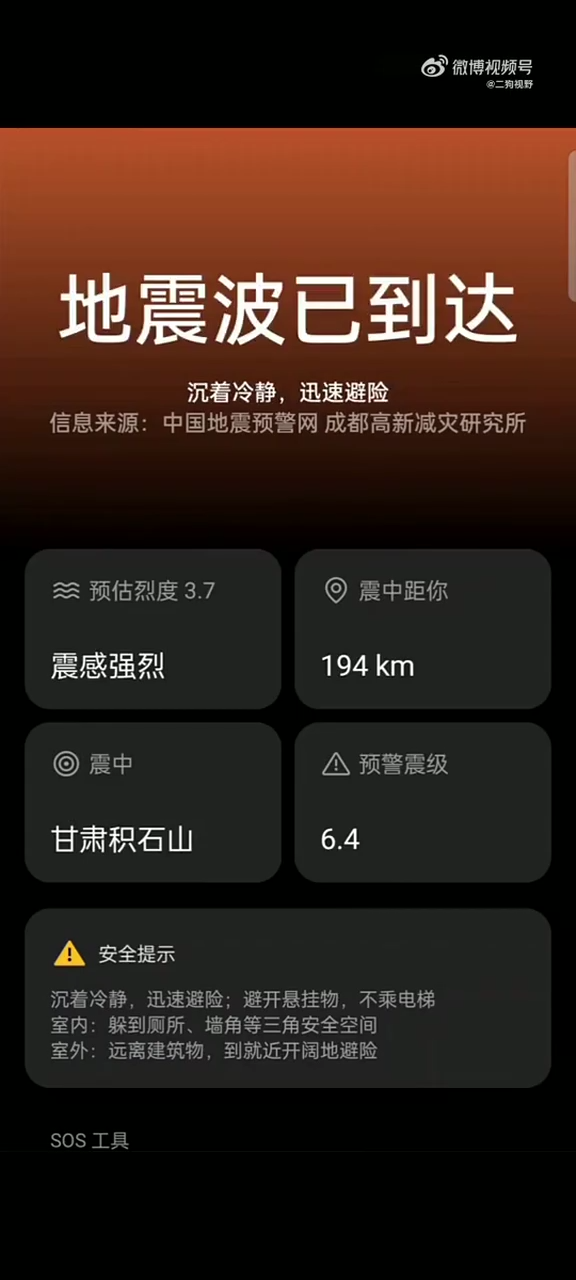 除甘肃地区外,很多周边地区的居民也都及时收到了地震预警: