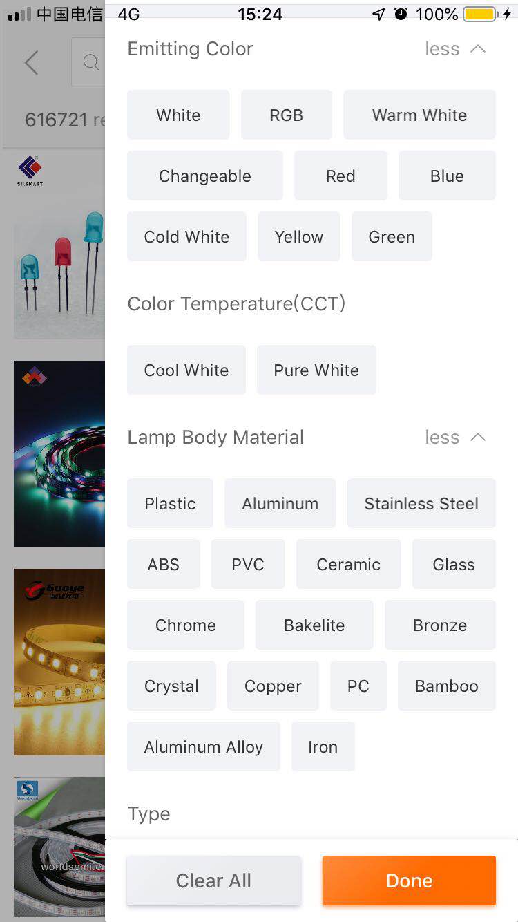 Alibaba为了使用中文APP这种块状筛选的样式,强行把很多相关的项拆开。英语用户的思维习惯于把相关性很高的东西算作一类一起筛选,经常使用国外APP的人应该会比较认同,比如“Automation, Motors & Drives”。但是如果用Alibaba这种方式,就需要把它拆成3个选项。筛选的选项过多,且筛选的范围更窄。这对于英语用户来说是非常不方便的。