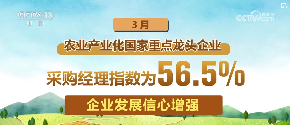 一季度,我国乡村产业发展势头良好,全国规模以上农副食品加工业增加值同比增长3.3%。3月,农业产业化国家重点龙头企业采购经理指数为56.5%,企业发展信心增强。乡村休闲旅游业持续升温,农产品电子商务较快增长。