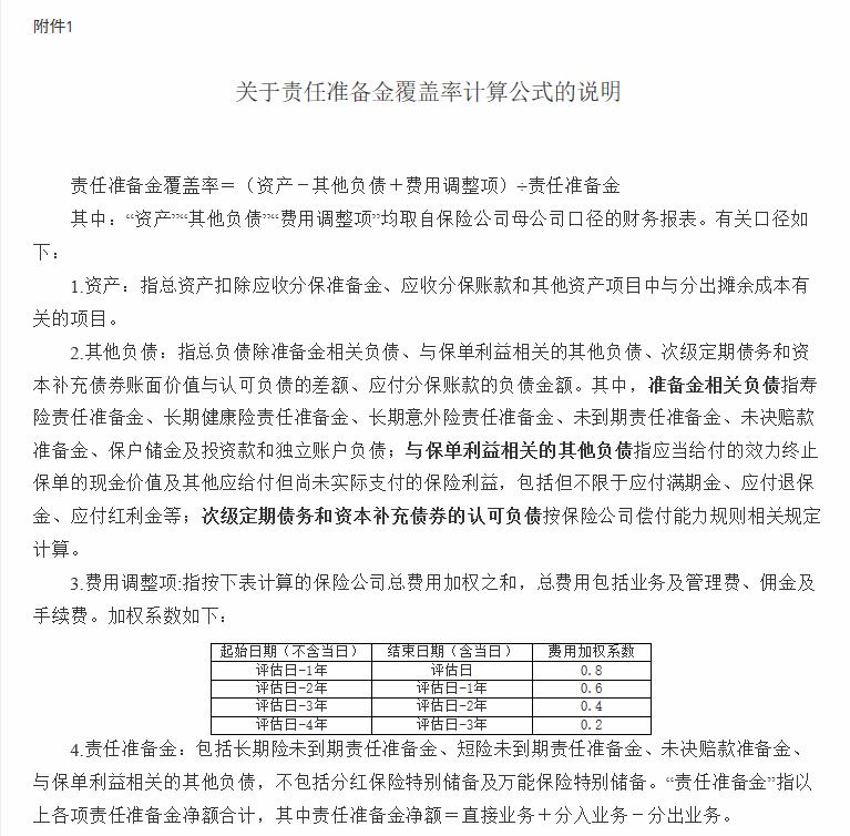 附件:1.关于责任准备金覆盖率计算公式的说明